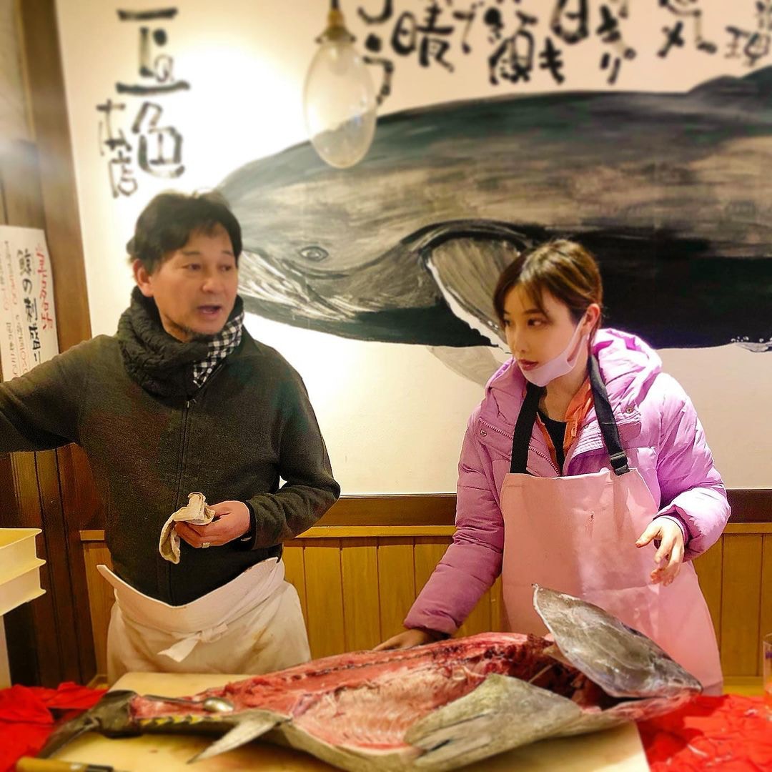 店里常常举行大型金枪鱼解体表演,每次都吸引了大量顾客驻足观看和购买产品。