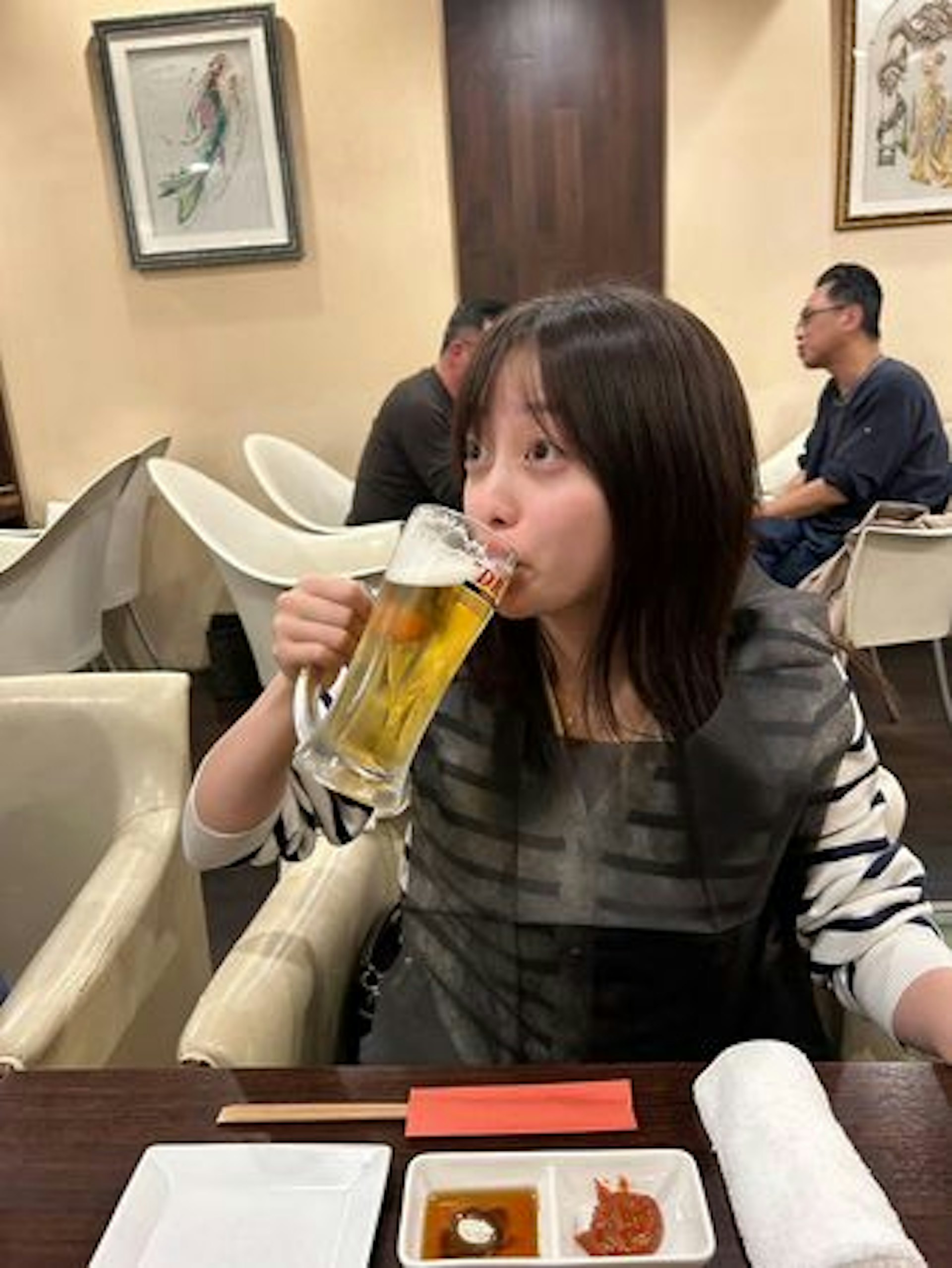 据报道,这场聚餐从傍晚开始,直到餐厅闭店时才结束,桥本全程都表现得非常活跃,更是在合影中举着大啤酒杯,神态俏皮,引发了众多讨论。