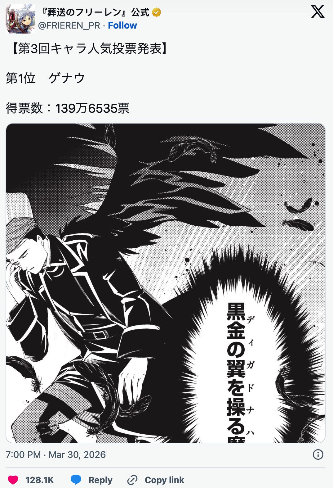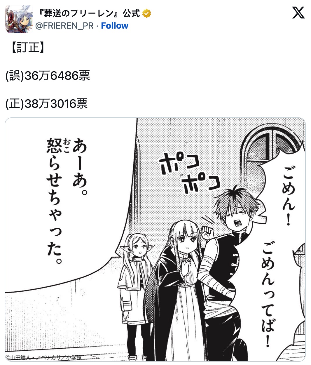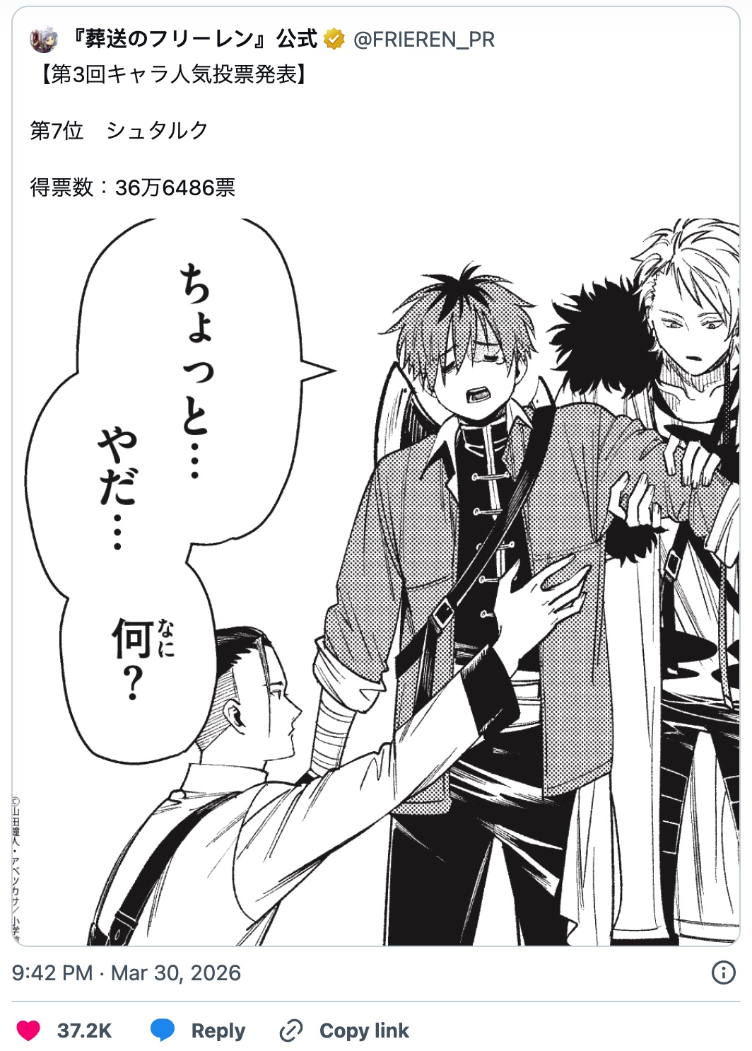 由《周刊少年 Sunday 》官方举办的日本超人气漫画《葬送的芙莉莲》第三回角色人气投票结果正式公开。这一次的总投票数强势突破了1270万票,一举创下历史新高。