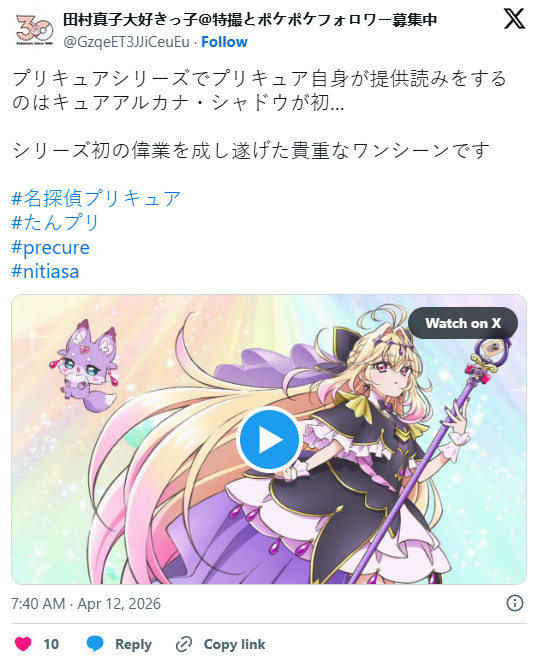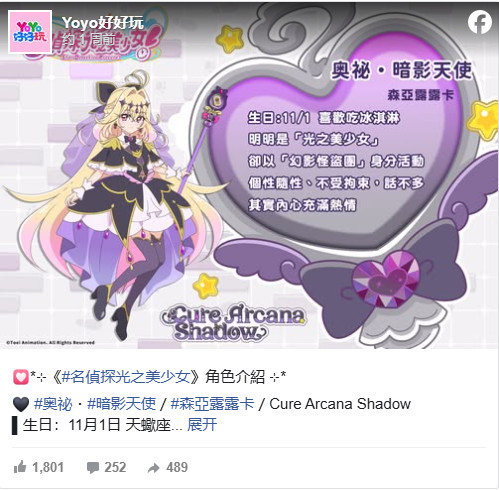 备受瞩目的《名侦探光之美少女》播出了第11集“奥秘. 暗影天使,现身!”“キュアアルカナ・シャドウ、現る”。那个曾在首集“ ED ”中引发全网破圈热潮的神秘光之美少女“奥秘. 暗影天使”及其变身者少女森亚露露卡,终于在本集迎来了高光时刻的首次正式变身,目前该集已在视频平台“ Youtube ”上限定公开中。