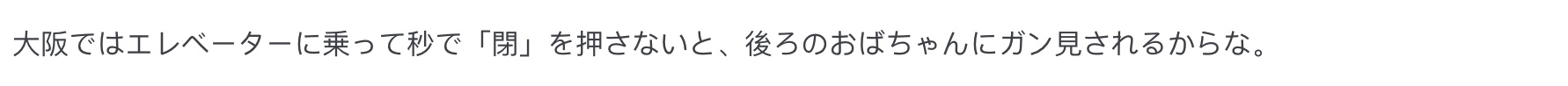 “在大阪,如果你进电梯不秒按关门键,是会被背后大妈用杀人的眼神锁定的。”