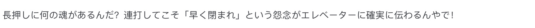 “长按有什么灵魂?必须得狂按才能把‘赶紧给我关上’的怨念精准传达给电梯啊!”