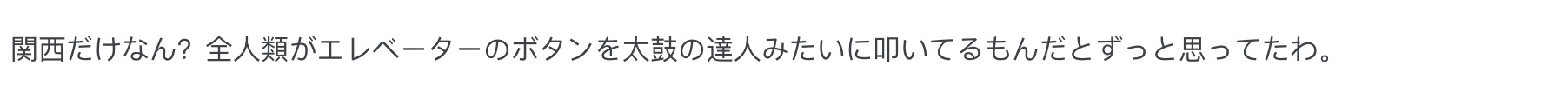 “原来只有关西这样吗?我一直以为全人类都是把电梯键当太鼓达人在敲的。”