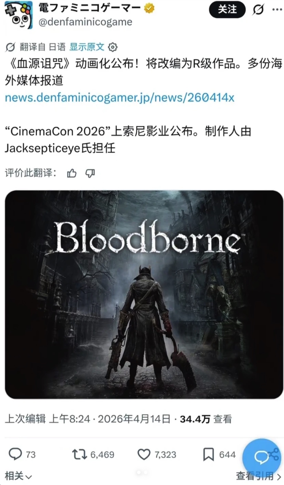 在近期于美国拉斯维加斯举办的 CinemaCon 展会上,索尼影业毫无征兆地释放了一枚重磅炸弹:他们旗下的 PlayStation Productions 确认将携手知名动画制作团队 Lyrical Animation ,正式把曾经大获成功的经典动作角色扮演游戏《血源诅咒》,直接搬上大银幕并改编成一部限制级长篇动画大电影。