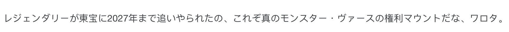 有趣的是,基于东宝与传奇影业签署的哥斯拉系列不得在同一年份上映的避让协议,传奇版的好莱坞大片《哥斯拉大战金刚:超新星》( Godzilla x Kong: Supernova )不得不乖乖让路,宣布将档期延后至2027年。