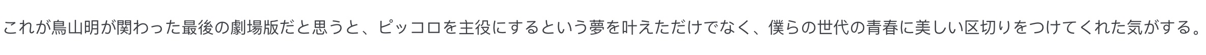 “想到这是鸟山明参与的最后一部剧场版,不仅圆了比克的主角梦,也算是给一代人的青春画上了美好的句号。”