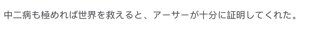 “亚瑟向大家充分证明了,只要你的中二病病得够深,照样能拯救世界。”