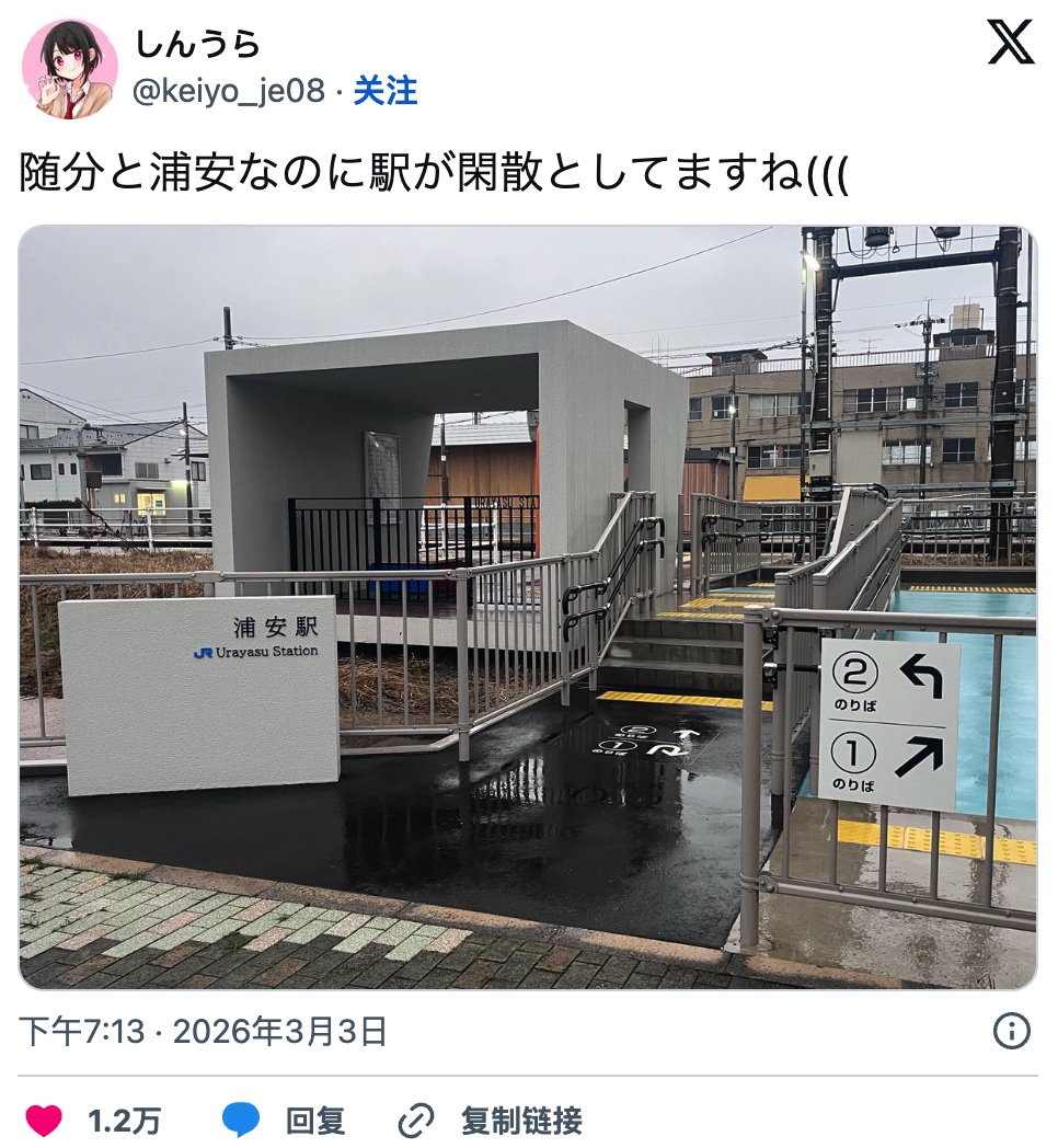 最近,一位家住千叶县浦安市的日本网友在社交平台上发出一声感叹:“这明明是浦安,车站怎么会如此冷清啊!”