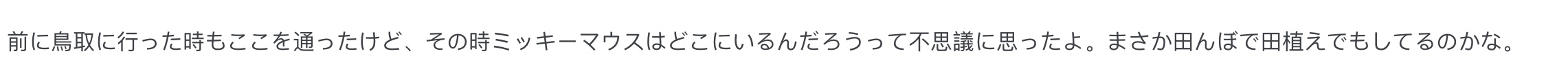 “我之前去鸟取的时候也路过这里,当时还纳闷米老鼠在哪儿呢,难道在田里插秧吗”