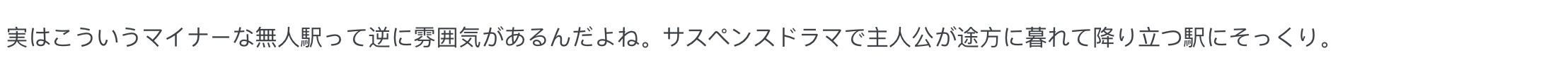 “其实这种冷门小站反而更有感觉啊,像极了悬疑日剧里主角走投无路时下车的样子”