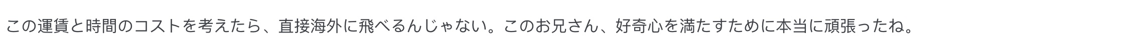 “这票价和时间成本可以直接再飞一趟海外了吧,这位老兄为了满足好奇心真的很拼”