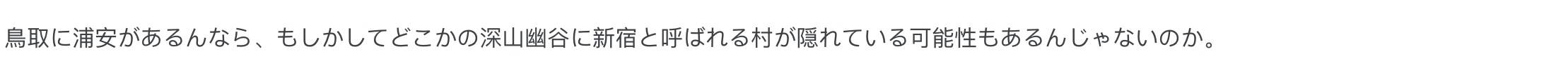 “既然鸟取有个浦安,那有没有可能某个深山老林里也藏着一个叫新宿的村子啊”