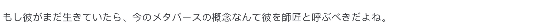 “如果他还在世,现在的那些元宇宙概念估计都要叫他一声祖师爷。”