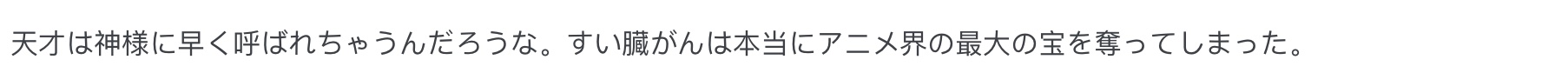 “大概是天才都被上帝提前召回了吧,胰腺癌真是夺走了动画界最大的宝藏。”