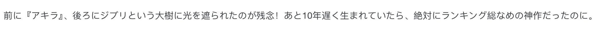 “可惜前有《阿基拉》,后有吉卜力,实在是被大树挡了光!晚生个十年,绝壁是屠榜级别的史诗神作。”