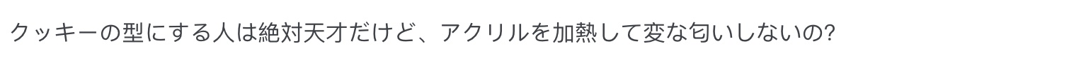 “拿来当饼干模具的人绝对是天才,不过加热亚克力真的不会有奇怪的味道吗?”