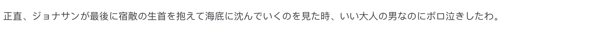 “说真的,看到乔纳森最后抱着宿敌的头颅沉入海底的时候,我一个大男人真的哭得稀里哗啦。”