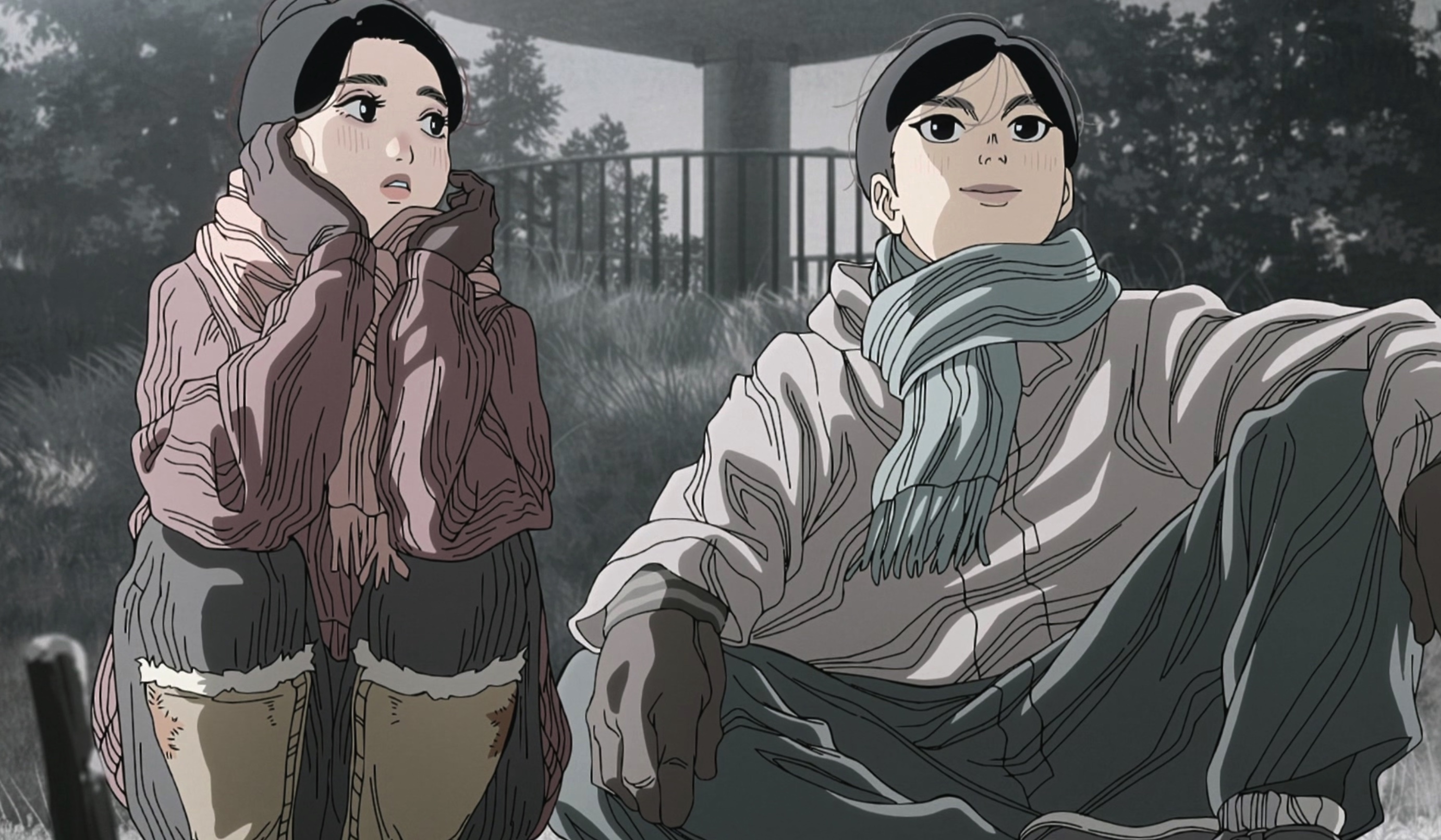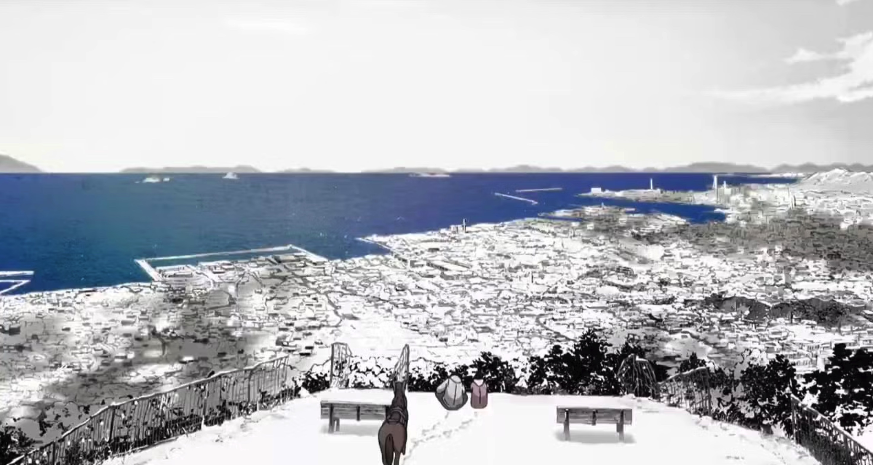 除此之外,如果缺少了 Studio Kafka 那些如同神来之笔的画面处理,这种震撼体验绝对会大打折扣。动画在许多场景下都刻意营造出了一种老式黑白电影般的质感。