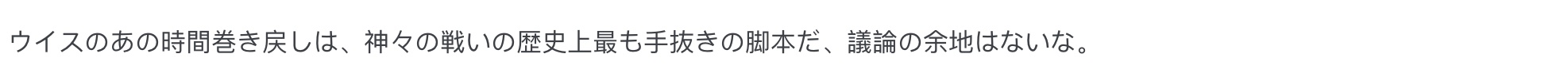 “维斯那招倒退时间简直是神仙打架史上最偷懒的编剧手法,完全没有商量的余地。”