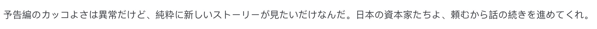 “预告片确实帅出一脸血,但我只想要全新的正剧故事,求求日本的资本巨头们让进度条往前动一动吧。”