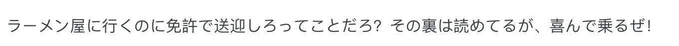 “去拉面店还要驾照接送对吧,我已经看透这背后的套路了,但我心甘情愿当司机!”