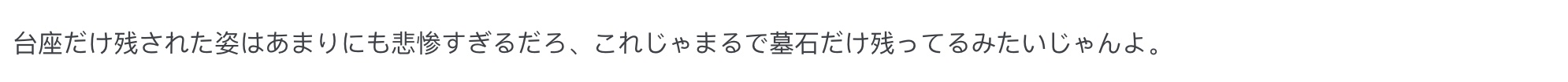 “只留下一个底座的样子也太惨了吧,这简直就像是只剩下一块墓碑一样啊喂。”