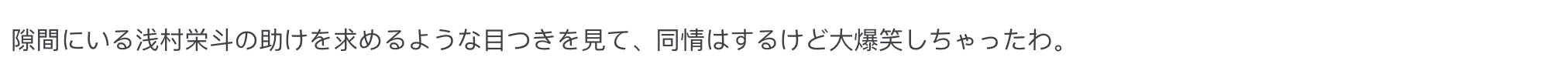 “看着浅村荣斗在缝隙里的求生眼神,我虽然很同情你,但还是忍不住狂笑出声。”