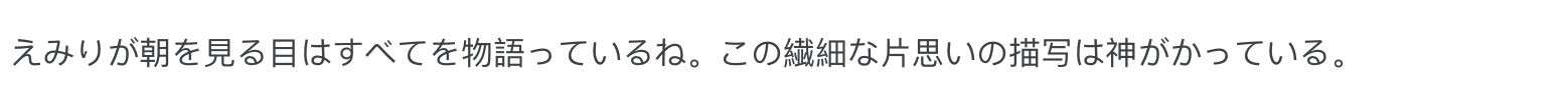 “绘美理看朝的眼神早就出卖了一切,这种细腻的暗恋描写太神了。”