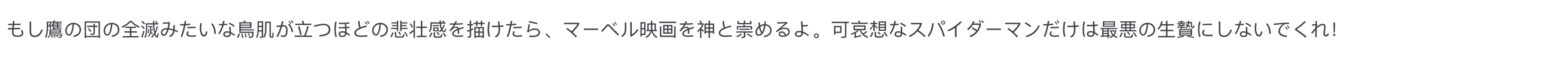 “如果真能拍出鹰之团全灭那种头皮发麻的悲壮感,我单方面宣布漫威电影直接封神,唯求别让可怜的蜘蛛侠当那个最惨祭品!”