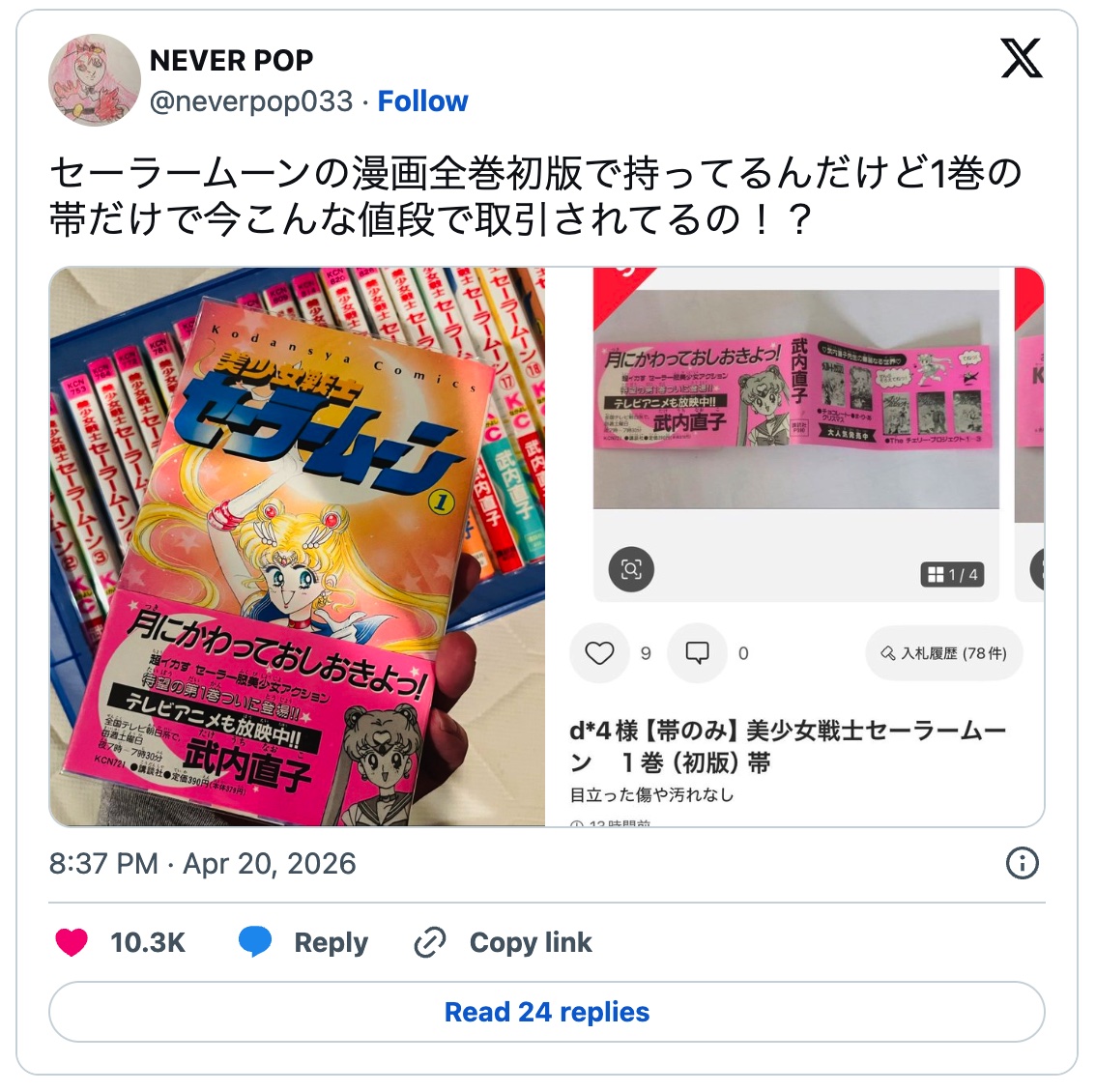 日前,在日本的某家拍卖网站上,一位匿名买家挂出了一件令人意想不到的奇葩藏品——《美少女战士》( Sailor Moon )初版第一卷的 “书腰” 。