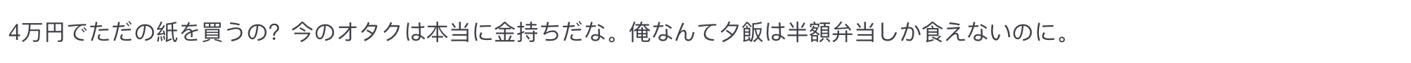 “花4万日元就买一张纸?现在的宅男真的是太有钱了,我连晚饭都只能吃半价便当。”