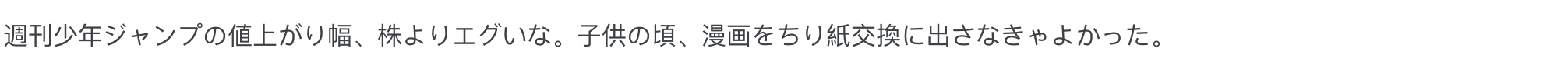“周刊少年Jump的涨价幅度比炒股还夸张,早知道小时候就不把漫画当废纸卖给回收站了。”