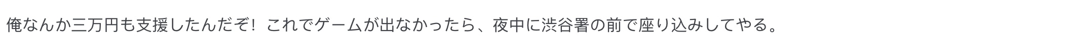 “我可是投了三万日元啊!要是这游戏出不来,我半夜就去涩谷警察署门口静坐。”