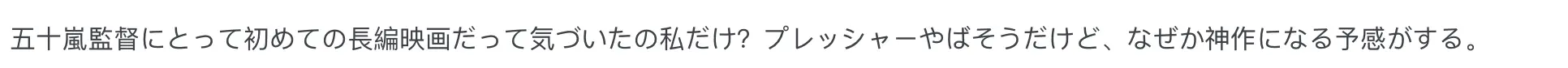 “只有我注意到这是五十岚海第一次做长篇电影监督吗?压力得多大,但莫名觉得会出神作。”