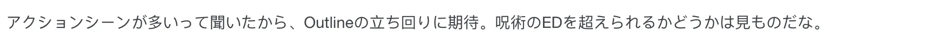 “听说剧本动作戏很多,期待Outline的打戏,能不能超越咒术的片尾就看这回了。”