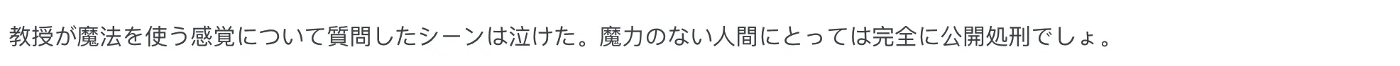 “教授问他施放魔法是什么感觉那段,我直接看哭了,对于一个没有魔力的人来说这简直是公开处刑啊。”