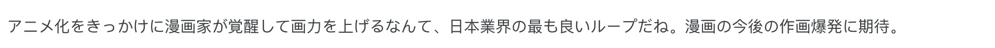 “原画师能在动画化中顿悟并提升画技,这简直是日本业界最良性的循环生态了,期待漫画后期画力爆发。”