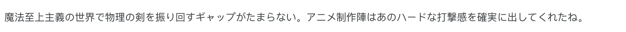 “在魔法至上的世界里挥舞物理大剑,这反差感绝了,动画制作组真的把那种硬核打击感做出来了。”