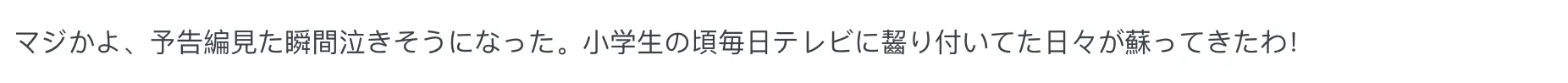 “我的天,看到预告片的那一刻我差点哭出来,小学时候每天守着电视看的日子全回来了啊!”