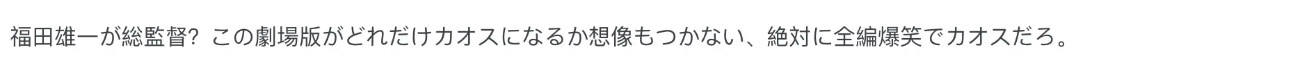 “福田雄一当总导演?那简直不敢想象这部剧场版会有多疯狂,肯定是全场爆笑毫无下限了。”