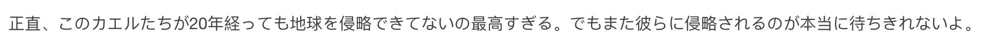 “说真的,这群青蛙过了20年还是没能统治地球也是绝了,不过我确实迫不及待想被他们再次侵略啦。”