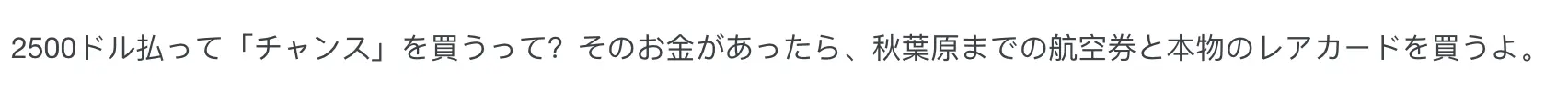 “花2500美元买个‘机会’?有这钱我还不如去秋叶原买机票加真的稀有卡呢。”