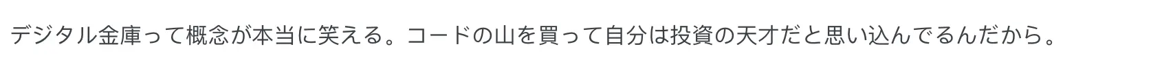 “数字金库这个概念真可笑,买了一堆代码还觉得自己是投资大师。”
