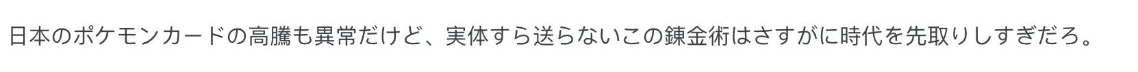 “日本的宝可梦卡牌也被炒得很离谱,但这种连实体都不寄发的空手套白狼操作还是太超前了。”