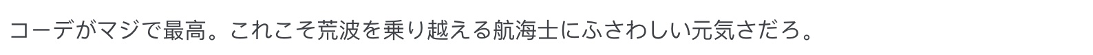 “穿搭简直太抓人了,这才是乘风破浪的航海士该有的元气感啊。”
