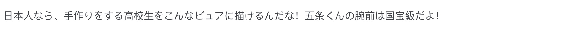 只有日本人才能把做手工的高中生描写得这么纯情吧!五条君的手艺是国宝级!