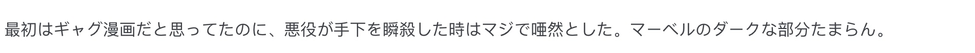 “刚开始以为是个搞笑漫,结果反派秒杀跟班的时候我直接看傻了,漫威的黑暗面好带感。”