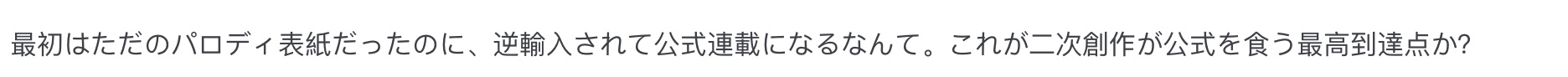 “当时只是个封面恶搞,被反向输出做成了正版连载,这就是同人逼死官方的最高境界吗?”