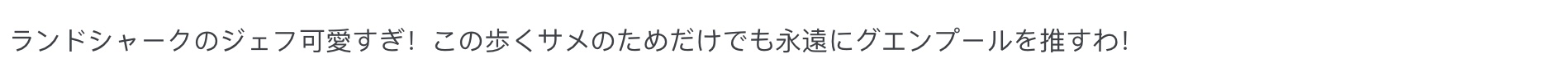 “陆行鲨杰夫太可爱了!为了这只会走路的鲨鱼我也要永远推格温侍!”