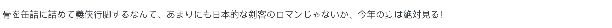 “把这副骨头架子塞进铁罐头里去行侠仗义,这也太带有日式剑客的浪漫了吧,今年夏天必追!”